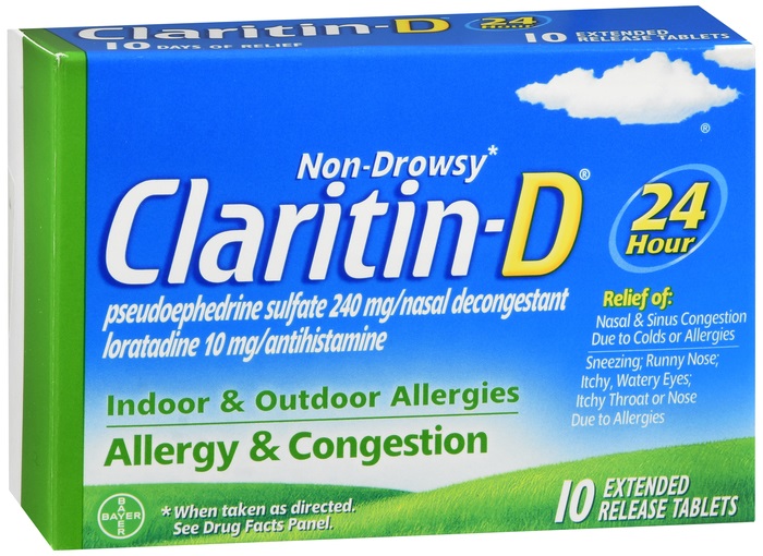 Claritin-D 24 Hour Tablet with Sudafed 10 mg-240 mg – 10 Count Bottle